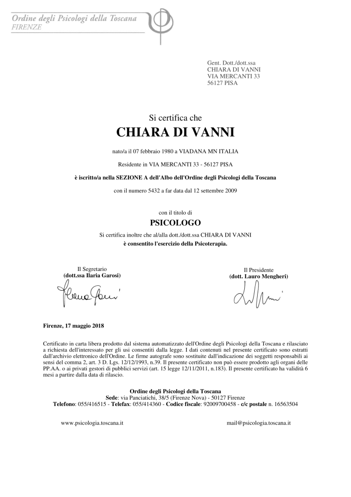 E' fondamentale verificare l'iscrizione all'Albo degli Psicologi.